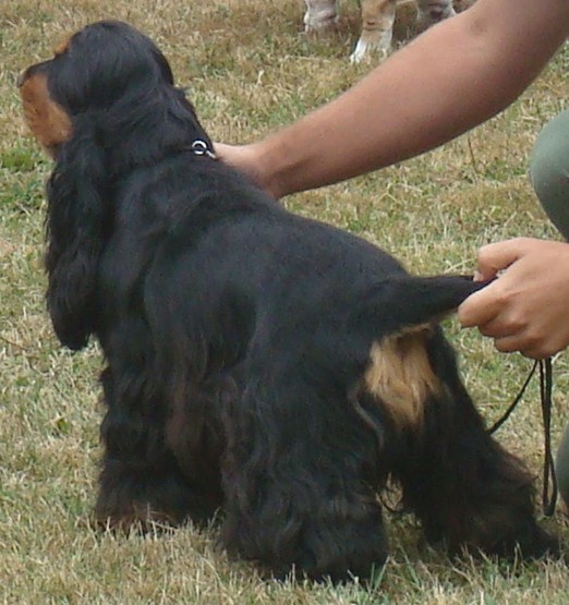Petite chienne vive et très cocker.Jolie tête.Bonne dentition. Bonne ligne de dos.Epaule un peu droite.Marche assez convenablement.
