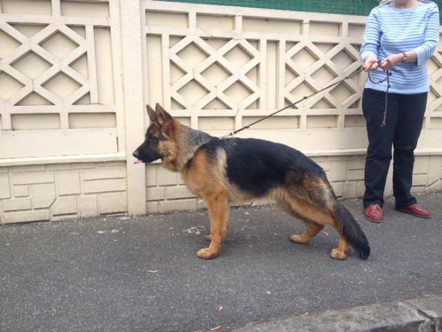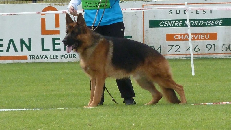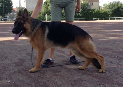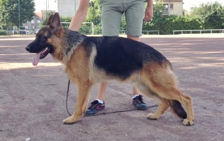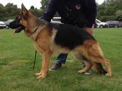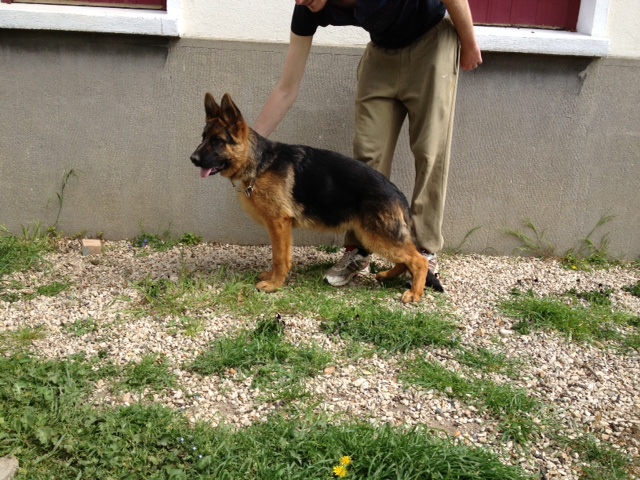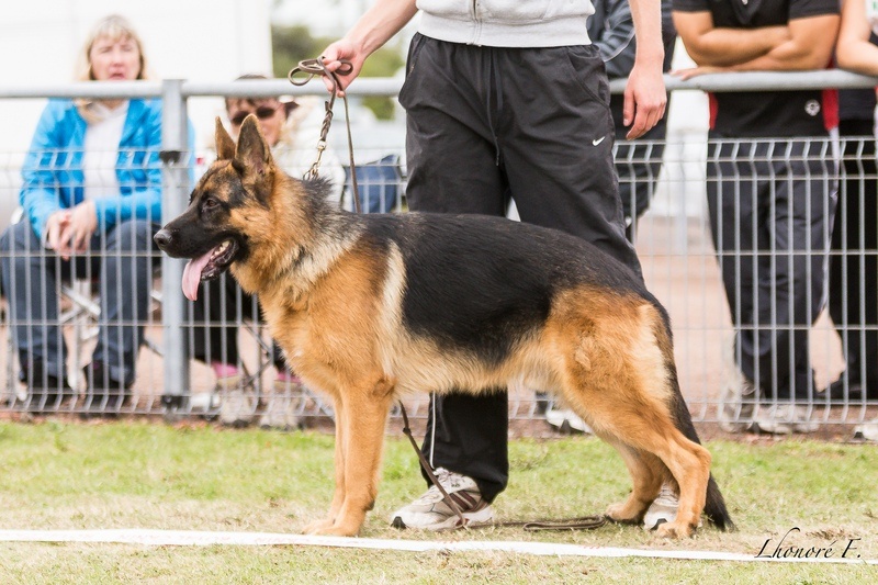 Bon type, TB tête mâle, Bonne ligne de dos, Bonne proportion, Croupe pourrait être plus longue, Bonne angulation avant et arrière. Bonne face frontale, manque de fermeté, jarret croisés un peu à l'avant, bon mouvement, Bonne poussée, prise de terrain un peu plus libre.
