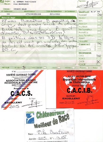 DCC-Chien Magnifique- construction typique- ligne plongeante avec un arrière large-excellente épaule-jarret std-belle poitrine et poitrail-belle encolureavec fanons typique-très belle tête et exprssion- crâne typique- sillon important- stop marqué par les arcades-oreilles très bien implantées-bonne longueur-bonne babine- bon oeil typique- allure typique