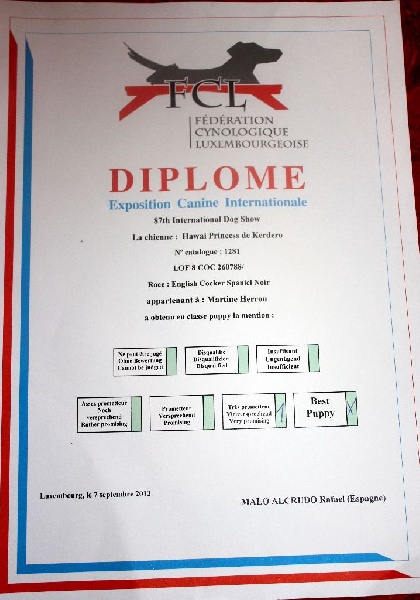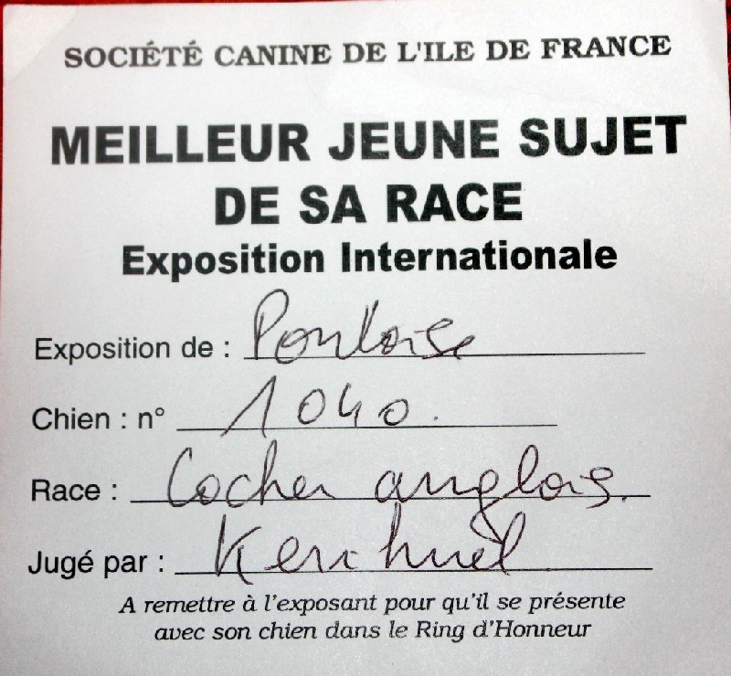 Il n est remit qu'un diplomeil n y a pas de slipMEILLEUR PUPPY DE LA RACE !!!