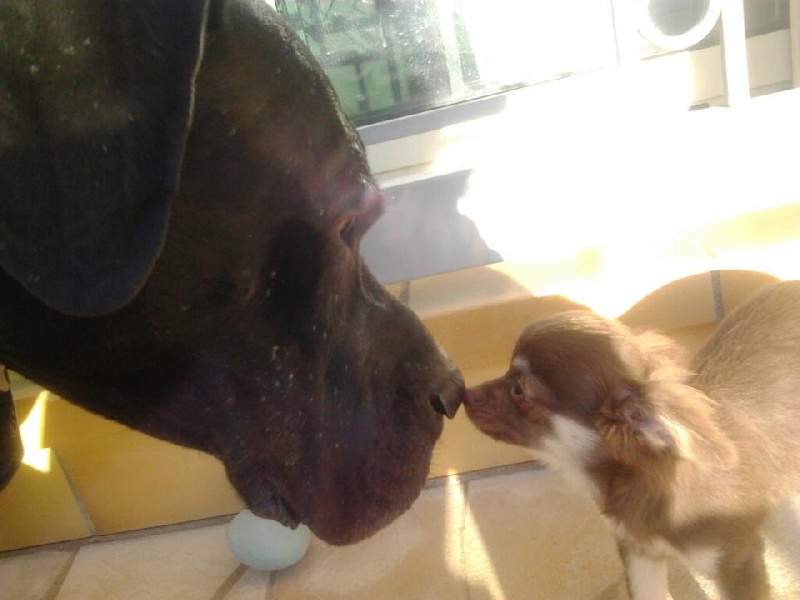 Il est très câlin et adore jouer avec les chiots.
