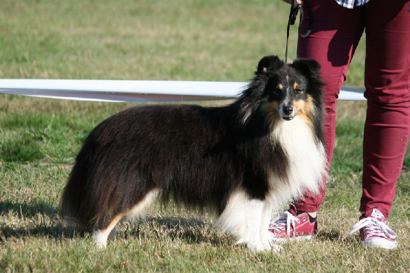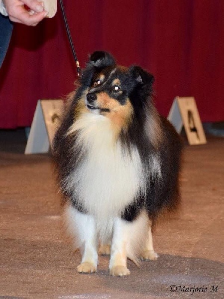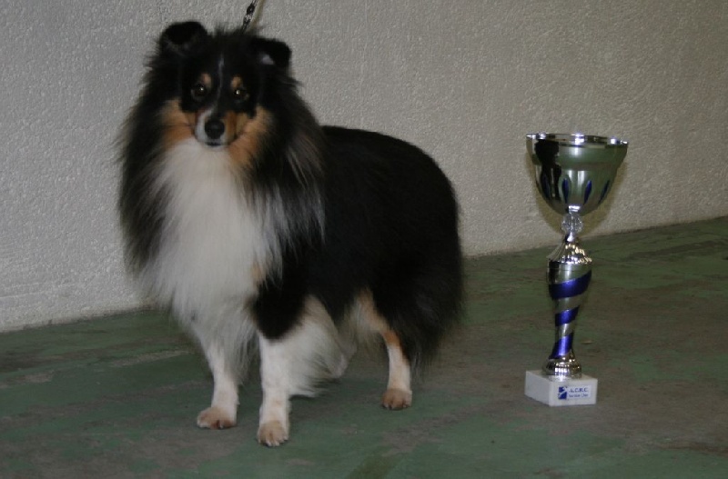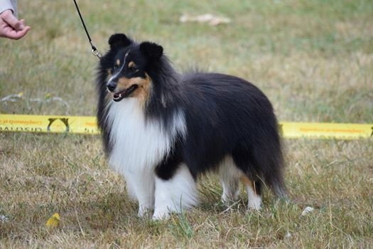 Very good breed type - Beautiful shape very well balanced head with a flat skull - Correct stop well placed and shaped dark eye - True shelty expression - Very good Shoulder and upperarm good depth of chest - Well arched neck - Good top line - Lovely sweep over the croup - Good bended "stifle" in perfect condition and real shelty