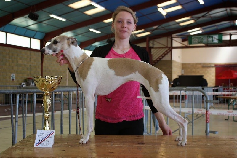Classe ouverte femelle 20 mois :Jolie tête bien ciselé, bien féminine, bon crâne, lèvres souhaiterais plus sèches, oreilles en rose bien attachées, bon stop chanfrein, bonne proportion, Excellente poitrine, bon dessous, belle encolure et angulations, bonne ligne de dessus, Très belle avant main, bon pieds.48 cm, très belle attache de queue, bien musclé, excellent pousser, bon mouvement, démarche légère et régulière.