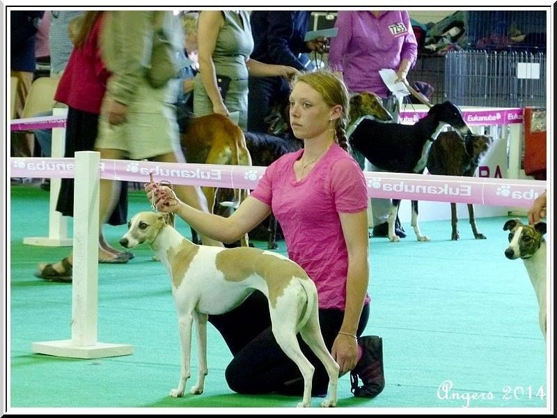 Classe ouverteTrés bon sujet dans son ensemble, chienne très élegante qui pourrait avoir toutefois un peu plus de suptance, jolie tête féminine porté sur une très belle encolure, corps bien construit, très bon dessus, poitrine pourrait être un peu plus développé, l'engulation de l'épaule pourrait etre un peu plus marqué, trés belle angulation arrière trés bon mouvement dans son ensemble