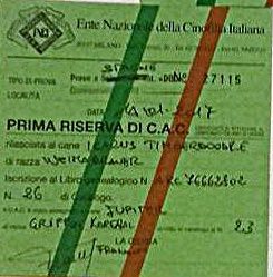 66cm - DCC complet - exc sujet bien construit, bonne expression - tête bien dans le type - belle expression de race - exc mouvement - dessus bien tendu - exc poitrine dans les 3 dimensions - exc aplombs et angulations - excellents pieds et exc dans le mouvement.