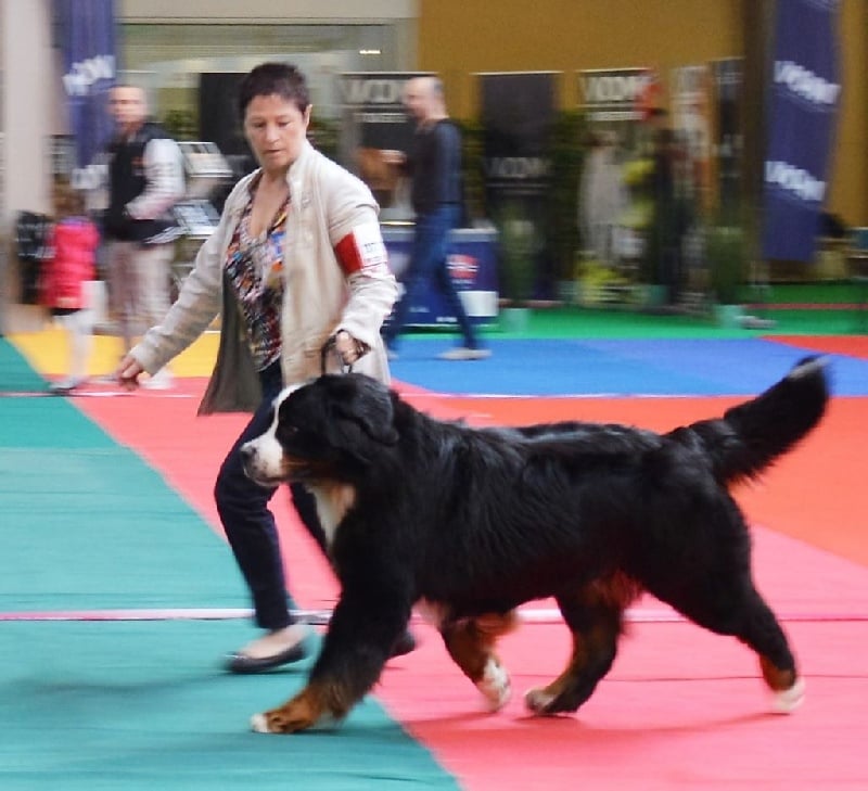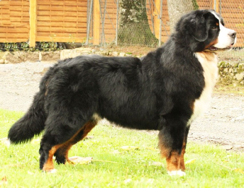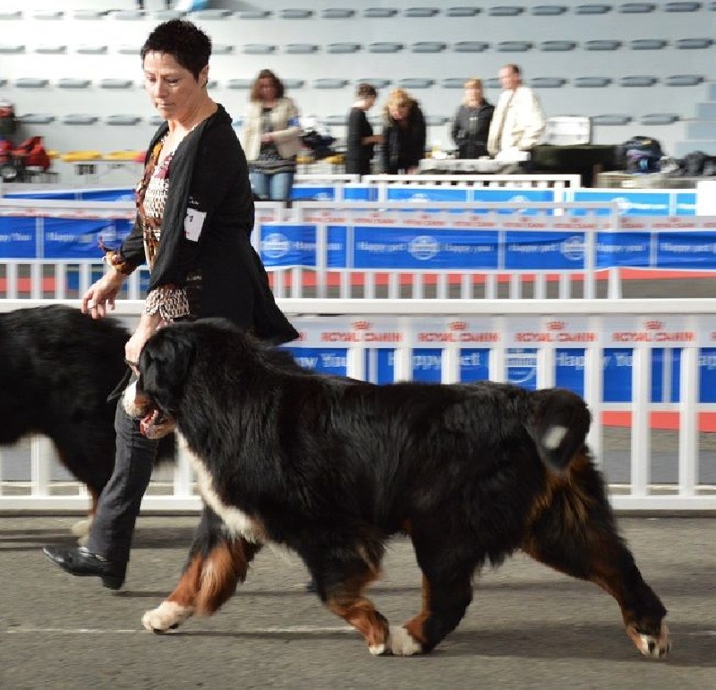 Excellent chien - Exc tête, crâne, chanfrein carré - Exc oeil très pigmenté - Articulé correct - denture complète - Exc avant main - Exc épaule, ossature, aplombs, pieds - dos solide - la poitrine est large, haute et profonde, juvénile dans les 3 dimensions - Exc dos - angulations exc des postérieurs - serre légèrement des postérieurs - fourrure bien à plat - mouvement correct des postérieurs - jette les antérieurs