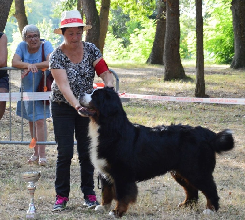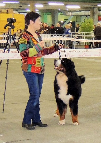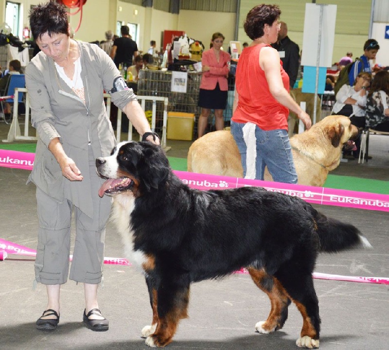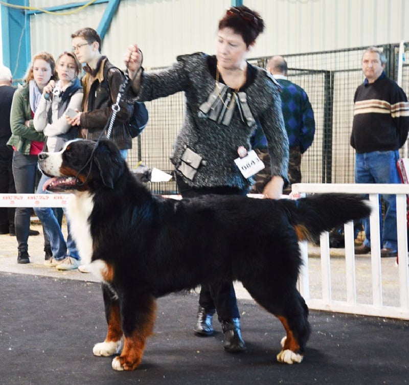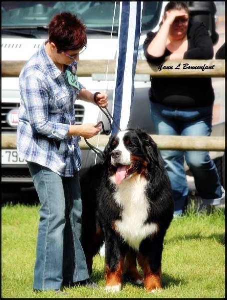 DCC - B taille - exc format + ossature - exc tête bien proportionnée - exc oeil brun - exc expression - petite laxité des babines - exc aplombs avant - tendance à ouvrir le pied droit - pieds de chat - exc dos + poitrine et dessous - TB ang arrière mais ouvre les pieds - queue bonne longueur, bien implantée - exc caractère - TB marquage - serre à l'arrière - queue bien portée - le dos manque encore de fermeté - bonne amplitude de mouvements
