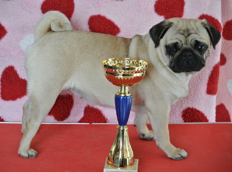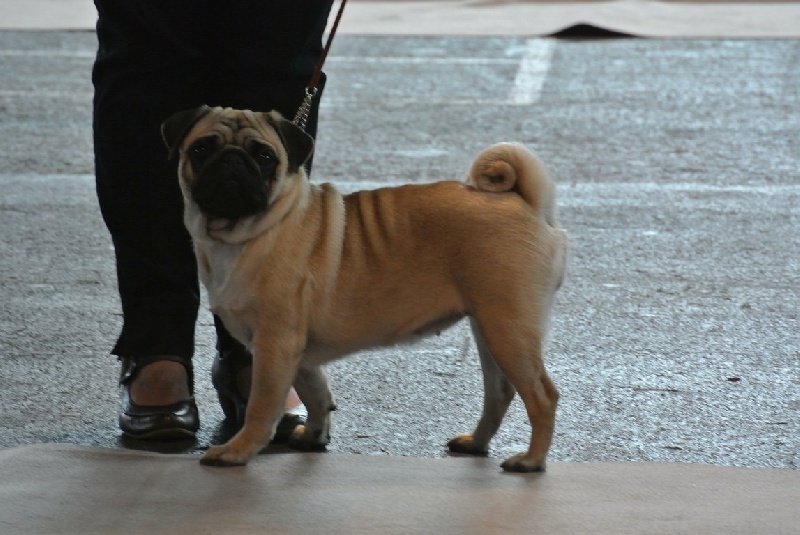 Exc sujet, Ex proportions, TB oreilles, Exc pig et denture, Exc yeux, Exc épaules et A-V mains, Exc poitrine et ligne de dos, Exc postérieur, la queue bouclée et plaquée, jolie robe, Exc démarche