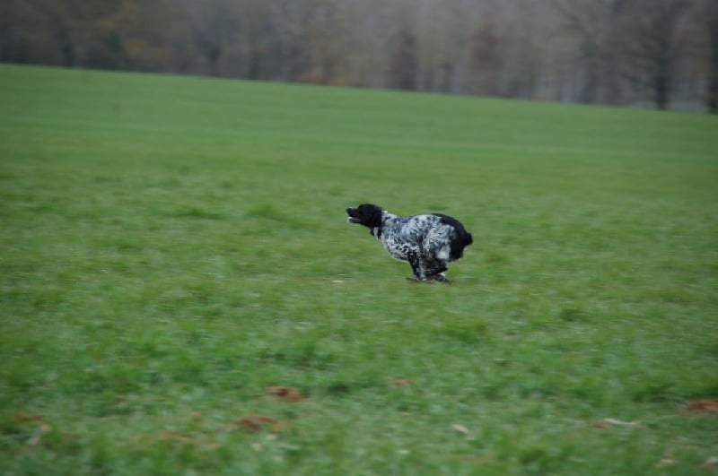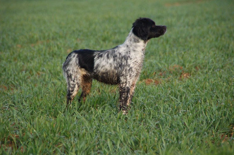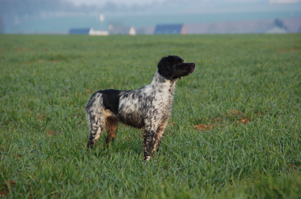 Au travail c'est une chienne « pétillante », très passionnée qui explore bien son terrain avec une quête étendue.et n’hésite pas à aller au dur. Elle possède un excellent nez et a un coulé énergique sur les oiseaux qui piètent. Sur le terrain, c’est une chienne très agréable et très facile à conduire, avec un excellent contact.