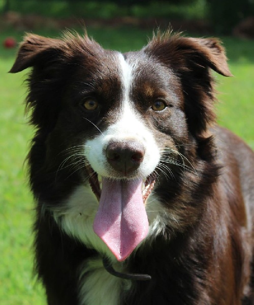 Au travail sur troupeau, elle a tout de suite montré une position midi naturelle et un très bon encerclement. Elle a une distance naturelle et est facile à repousser. Mord au talon et a la tête. Ne se laisse pas impressionnée, respecte le bétail.