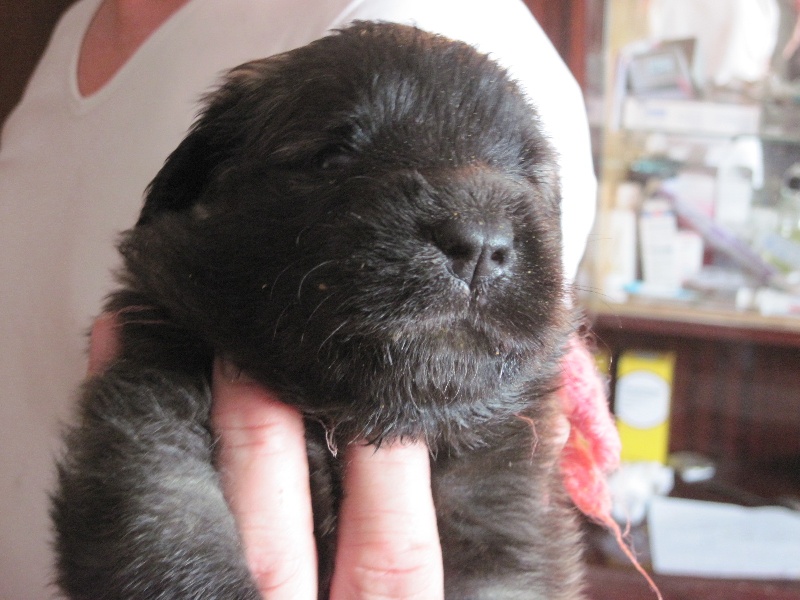 Bon développement forte ossature excellente tête avec excellente expression. Excellent masque Excellente angulation avant et arrière.TB aplombs arrière. Jolie fourrure de BB. Excellent caractère. Excellente présentation. Serre de l'arrière en aller retour et s'affaisse sur les poignets à l'avant. Joli BB qui présente des qualités.