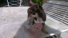I'ycha dit IUM IUM joli petit mâle chihuahua âgé de 8 mois est disponible a la vente, petit modèle - de deux kilos, chien très bien dans sa peau très sympa non dominant, adore les promenades marche parfaitement en laisse,