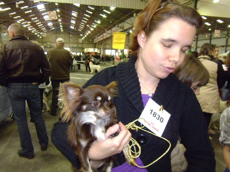 Ex Prop,Sujet enveloppee,TB Tete aurait aime plus de pomme,TB yeux aurait aime plus foncé,Ex oreilles,Ligne de dos,Ex Ant et Post,attache basse de la queue,correct en mouvement.