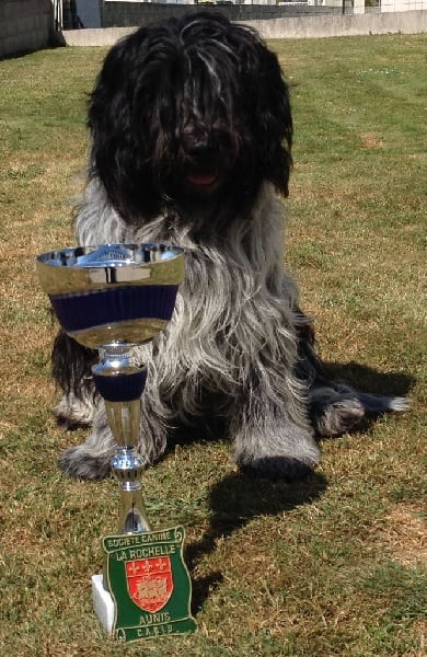 Femelle noire et gris, DCC Exc tête dans son ensemble, Exc ossature, Exc proportions et ensemble, Mvt régulier atypique et Exc port de queue, fouet un peu juste en longueur, Exc caractère, Exc conditions de fourrure, Exc présentation