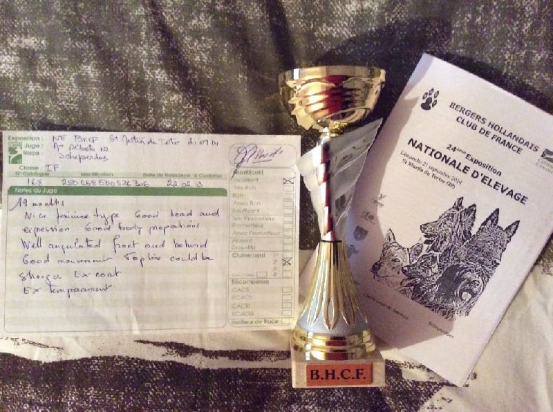 Denture cisailleTB proportions EXC ?il forme couleurOreilles TB placées et bien portées TB proportions EXC dos fondu TB croupeEXC poitrine TB aplombs TB angulations TB texture de poilEXC mouvements typique