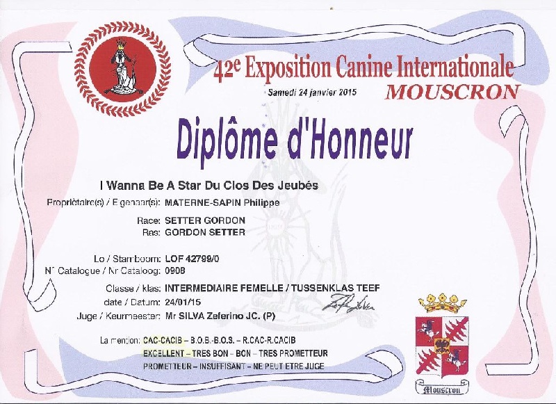 Wanna récupérera les titres CAC + CACIB vu que Jazzy Of Lady Woodcock est déjà CH de Belgique et multi-Championne Internationale.