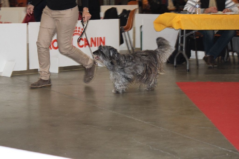Le samedi - juge M. GianonneJolie chienne bien typée Pyrénées - Belle expression - Joli corps contrasté - Présenter en cadenettes - Excellents pieds et aplombs - Mouvement régulier - Excellent caractère.Résultat: 1ère - Excellent - CACS - Meilleur de race.