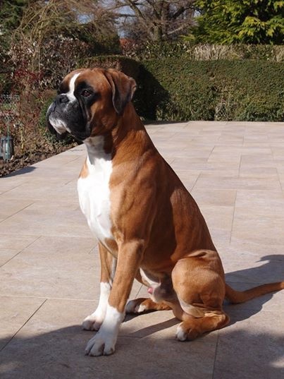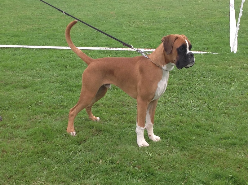 Fauve rouge marqué en blanc,virile,puissant carré, forte ossature, ?il 2A,belle poitrine, beau poitrail, excellent arrière main, très bonne épaule,Ex dessus, fouet bien implanté,belle encolure puissante et suffisamment longue, pied de chat, tête très masculine avec museau cubique,Ex.volume, Ex.stop, truffe saine très remouchée, beau masque, crâne un peu fort avec oreilles bien implantées, prognathisme normal sur mâchoire carrée, excellente prise de terrain et régulière...Avec un papier comme ça sans défaut et parfait comment étaient les 3 premiers!!!