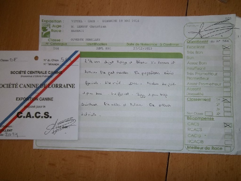 2 ans 1/2, sujet rouge et blanc, exc dessus dessous, exc port oreilles, exc proportions crânes faciale, exc oeil, DCC, texture du poil un peu dur, exc fouet, Zyg un peu trop saillant, exc aller-retour, exc allures latérales