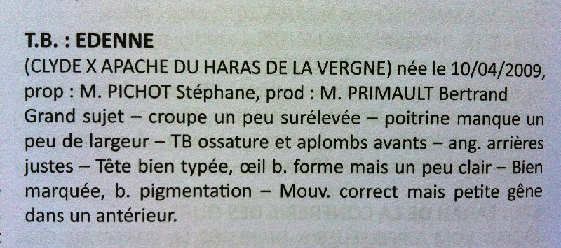 Manifestion : Nationale d'Elevage - Juge : M FRISK Svante