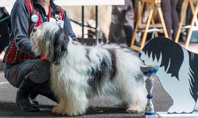 Joli sujet très typique, excellente tête, exc pigmentation, exc encolure, poitrine forte, le dessus creuse un peu, exc angulation avant et arrière, exc poils en belle condition, exc mouvement de profil avec une belle amplitude___Meilleur ChampionMeilleure femelleMeilleur de sexe opposé ( BOS )