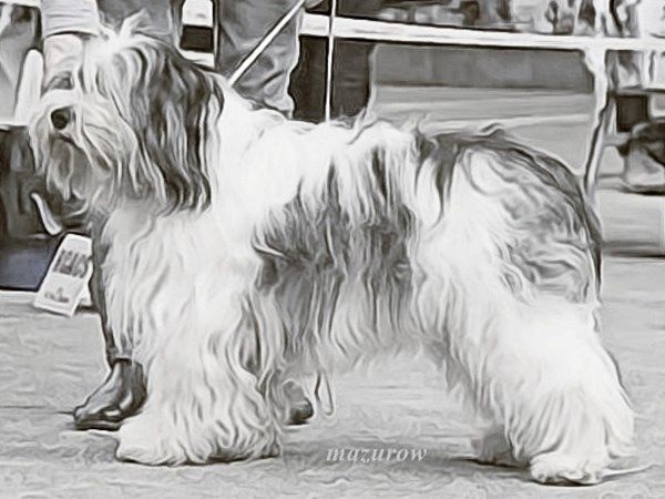 Excellente proportions,bien typique, tête exc prop, oeil bien foncé, DCP, Exc aplombs et angulations, exc poitrine et poitrail, exc couverture, queue longue bien plantée et bien portée, Mouvements bien typiqes