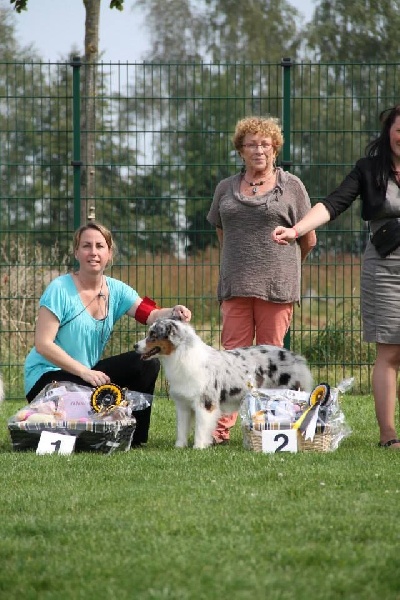 Belle Tête - B. yeux et oreilles - B. expression - Dos bien tendu - B. ossature - B. proportion de corps - un peu grasse - B. aplombs - TB angulations avt, B. à l'arrière.Indy a été confirmée lors de cette manifestation