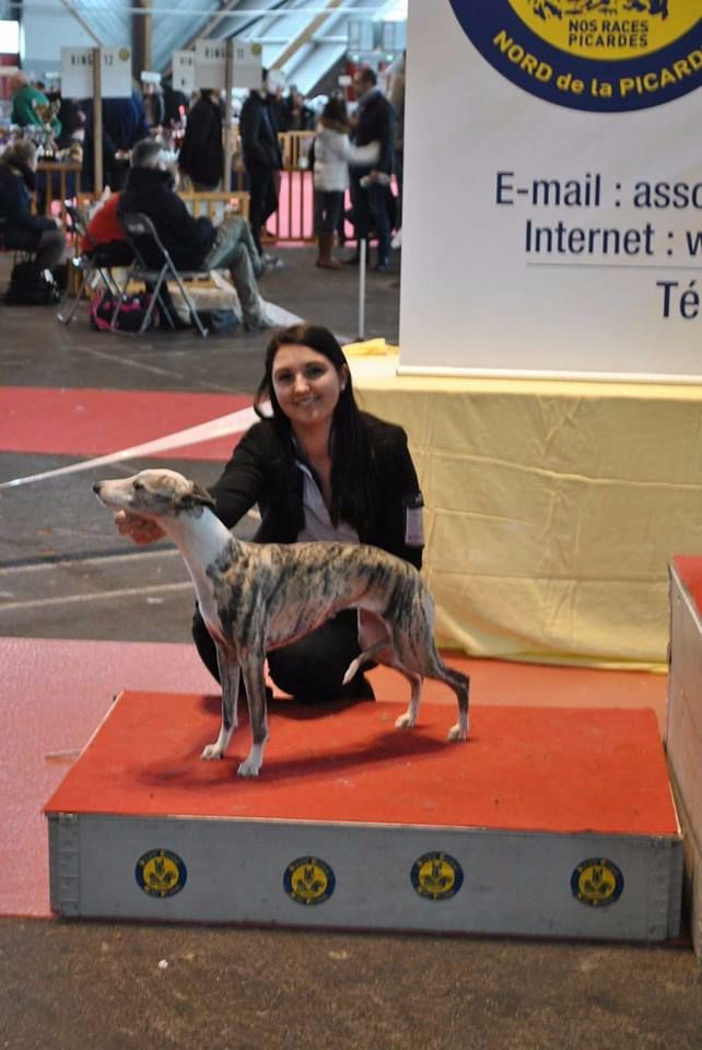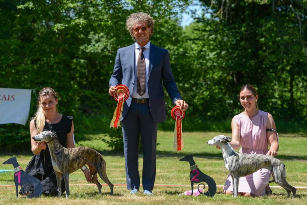 Fem3lle bringe tache blanche 8 ans et demi. Conditions de présentation impeccable. Excellente taille. Sujet élégante. Bonne proportion substance et élégance. J'adore ses lignes très douces de son profil très classique. Excellente ossature. Bonne tête et expression. Cou long et fort. Angulation bien équilibrées. La femelle couvre plein de terrain en statique. Mouvement bien dynamique et équilibre. Félicitations pour 1 veteran en super condition de qualité top niveau.