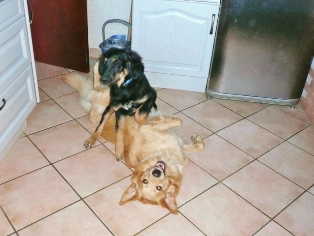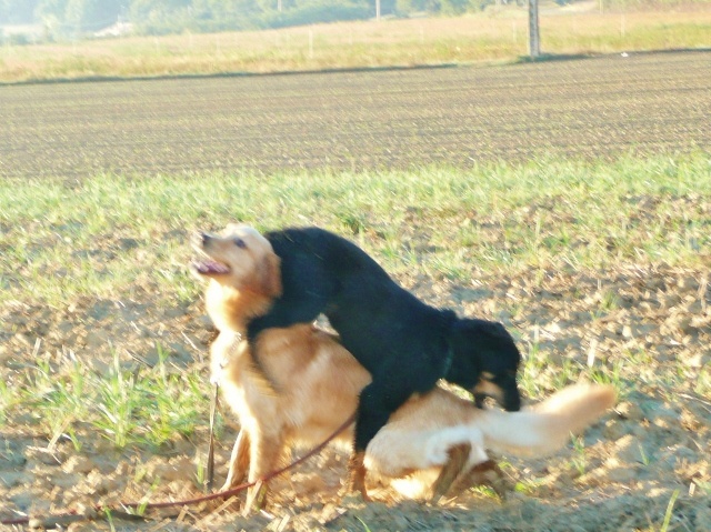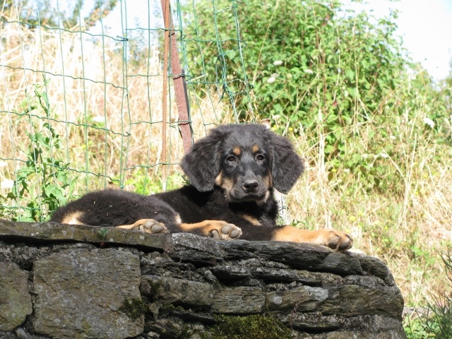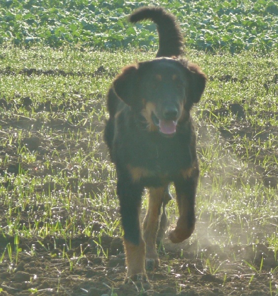 Bonne tête et expression, bonne ossature, les aplombs un peu plus droits, bonne fourrure, poitrine bien développée pour son âge, bonnes angulations, marche bien.