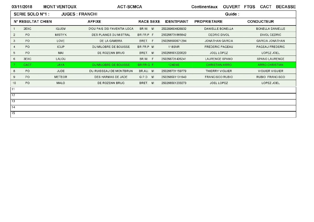 - Classe intermédiaire : 1er Exc, CAC, CACIB, MR
