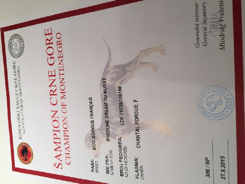 Chien Bouledogue français CH. Iphigénie dream Du murat