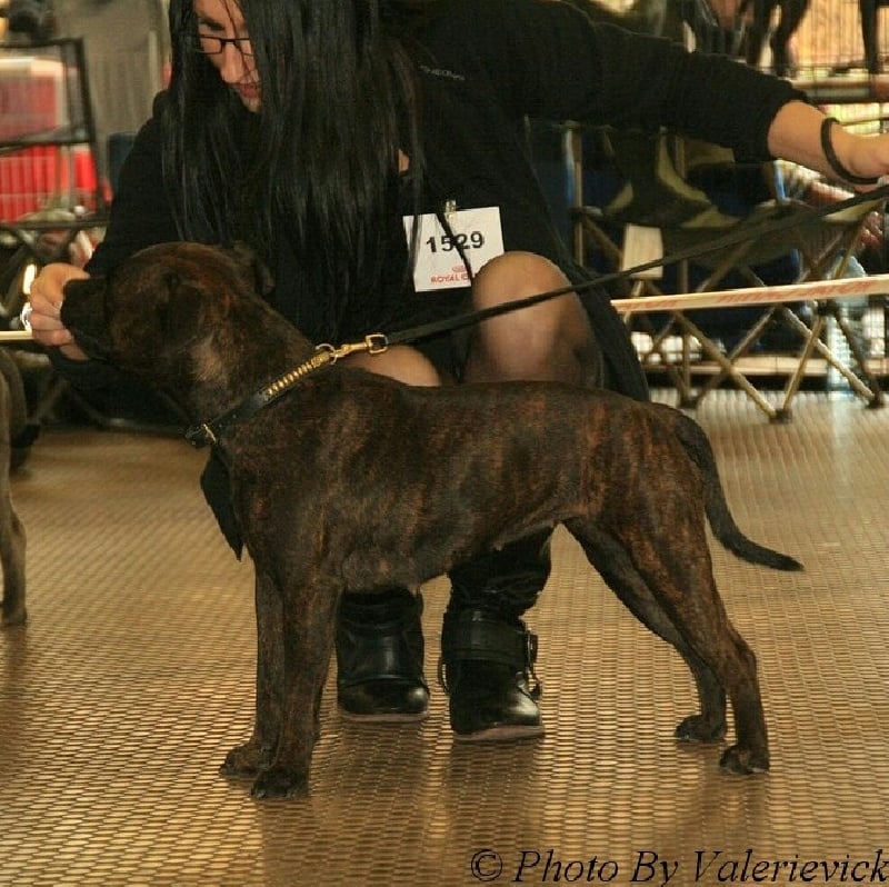 12 months Brindle, headneeds to develop straight front, tidy feet, immature bodily, moved ok.