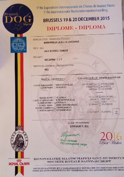 Vice-Champion du Monde le 11 Novembre 2017 lors du World Dog Show qui s'est déroulé à Leipzig (Allemagne)