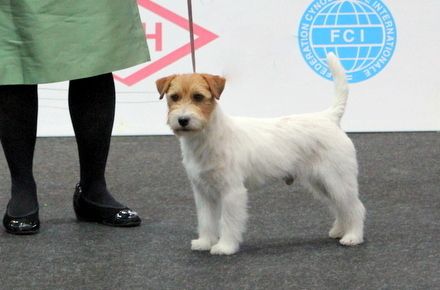 Classé 3ème sur le ring d'honneur (groupe 3)Excellents crâne & tête, stop parfait, oreilles petites et bien placées, excellente pigmentation, excellentes dents et articulations, poils durs, excellent port de fouet, très belle ligne de dessus, très belle arrière-main, excellent mouvement avant et arrière