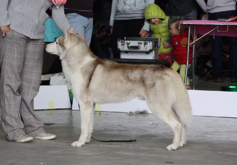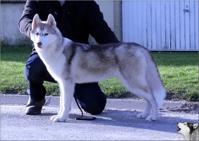 Sujet avec bel ensemble avec de la substance osseuse sans être lourde, excellent rapport hauteur longueur de corps qui doit prendre maturité, dos droit, jolie tête, expression juvénile, excellent attache oreilles, pigmentation bien homogène pour sa couleur, excellente encolure, mouvement régulier.