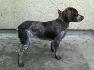DCC. 46.5, Excellent modele dans l'ensemble, Excellente tete et oreille. Belle expression bretonne. Belle sortie d'encolure. Dessus correct et arrière main. Poitrine déjà bien evoluée. Excellents aplombs, angulation et pieds.Excellente démarche et foulée.