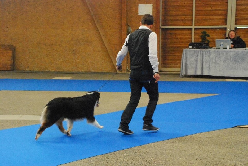 Noire tricolore, DCC, Très Bonne construction, caractère timide ne se met pas en valeur, ligne de dessus un peu souple, œil et oreille de Bonne forme, Très Bonne avant main et poitrine, Arrière main un peu juste, se déplace bien, doit prendre de l'assurance