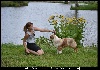 Jeune femelle (17 mois) : Excellent format bonne construction, dent complète de niveau, bel oeil, belles oreilles, bon aplombs avant, bonnes angulations arrière, excellente ossature / poitrine / condition, marche bien.