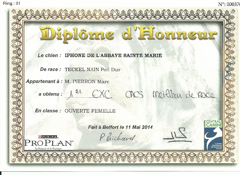 Chien Teckel CH. Iphone de L'Abbaye Sainte-Marie