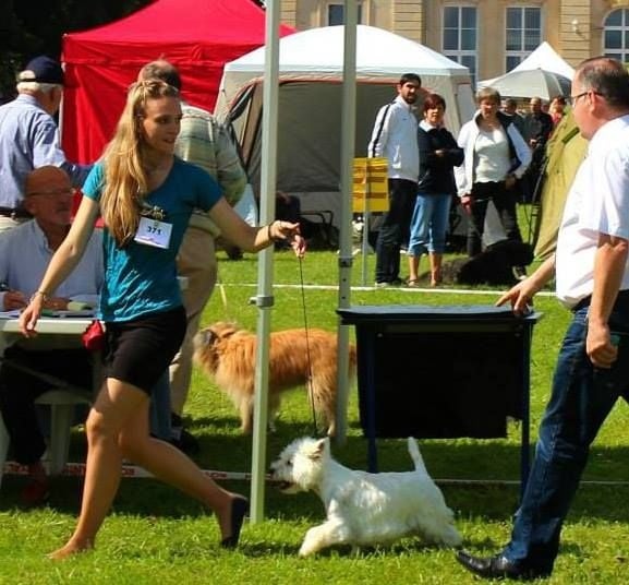 Chien West Highland White Terrier Irresistible lady pink Of Precious Danbury
