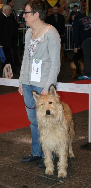 DCC, sujet fauve, très féminin, présentée en mue de printemps, avec excellente texture de poil et excellente couleur fauve devenu très rare, excellents aplombs avant et arrière, sujet sympa qui se laisse bien examiné, format de crâne et proportions de tête préféré avec plus d'amplitude ne nuisant pas à l'expression générale