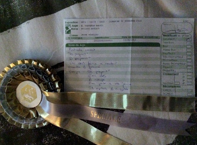 Tb proportions, B expressionEx ?il forme et couleurOreilles bien placées Corps : Tb proportions Ex dos B croupe Ex poitrine de jeune Tb aplombs B angulations