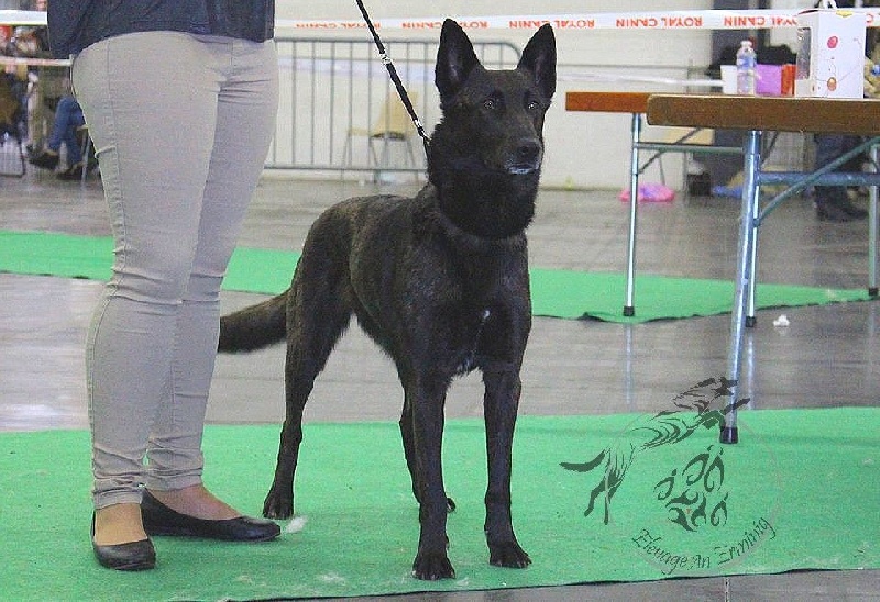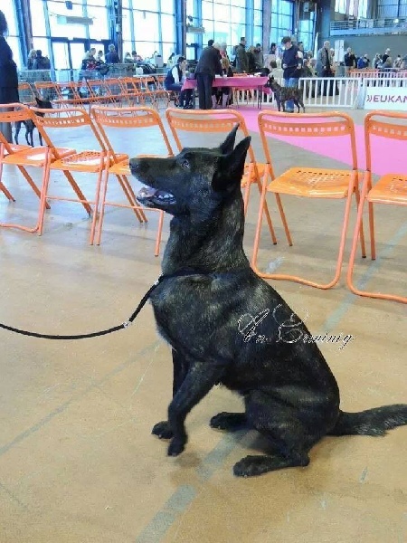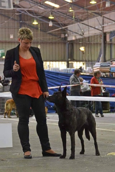 3ans.Sujet féminin, robe bringée legerement foncée. Excellente tete dans son ensembleExcellent oeil couleur et formeOreille de bonne taille et bien portéesTres bonne sortie d'encolure, excellente proportion d'ensembleLegerement serrée des postérieursMouvement régulierTypiqueExcellent port de queueExcellent caractère et présentationCACS CACIB Best Opposite Sex
