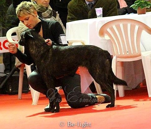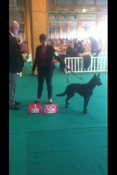 DCC, très bonnes proportions de tête, excellent oeil forme et couleur, très bonne oreille et très bien portée, très bon paralellisme.très bonnes proportions du corp, excellent dos tendu, bonne croupe, excellente poitrine, très bons aplombs et angulationsexcellent mouvement et allure1ere Excellente CACS CACIB