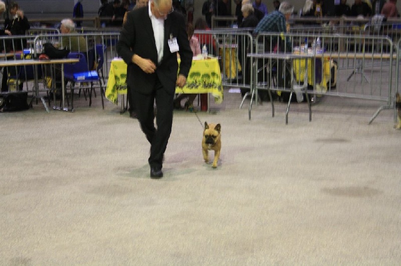 Chien puissant mais un peu haut sur pattes , angulations arrières trop droites ,excellente queue , la poitrine n'est pas assez ronde , pourrait avoir un peu plus de menton , bonne largeur de mâchoires mouvement correct .