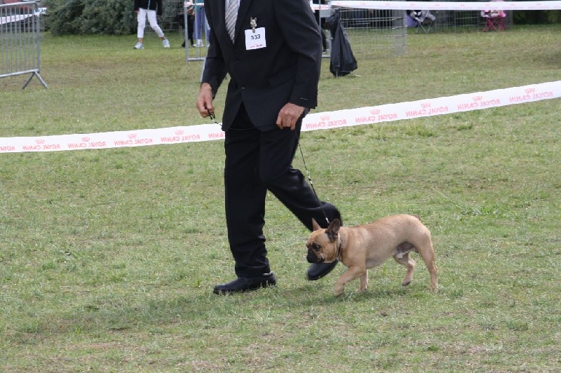 excellent sujet fauve complet ,excellent crâne , excellent prognatisme , excellentes rides parallèles , oeil bien plein , bien coiffé , bonne avant main , excellent pied de chat avec ongles noirs , excellente ligne dessus , dessous , queue bien placé bonne angulation , bonne démarche .