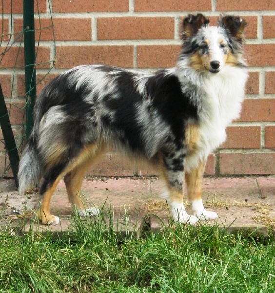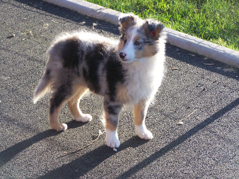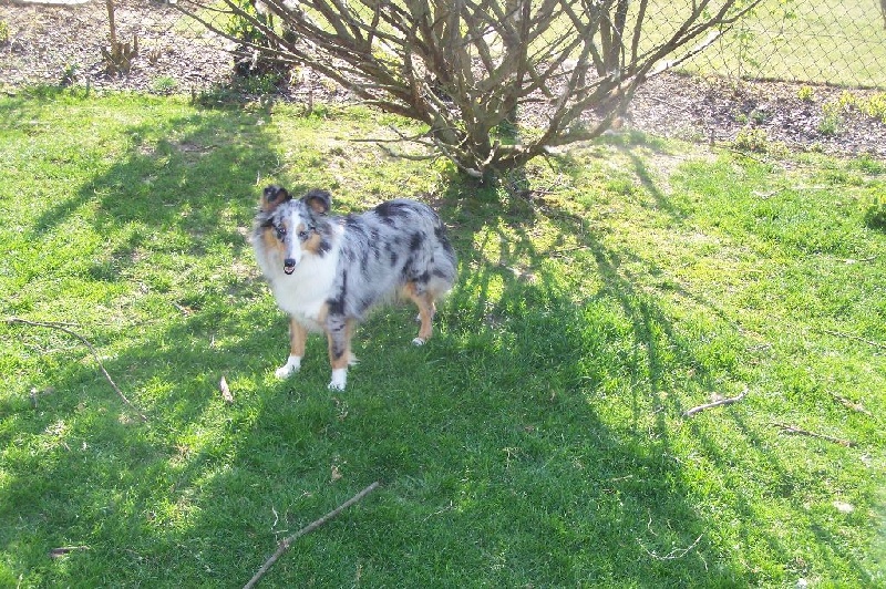 C'est une chienne que j'ai acheté à l'élevage des Gardiens des Tois Magots, afin d'apporter un sang nouveau dans mon élevage. Elle sera testée en AOC et MDR1 dans le courant de l'année 2015, mais elle nepeut être atteinte d'aucune de ces 2 tares, sa mère, Greta Blue Du Puits Saint Loup étant indemne génétique de ces 2 tares.