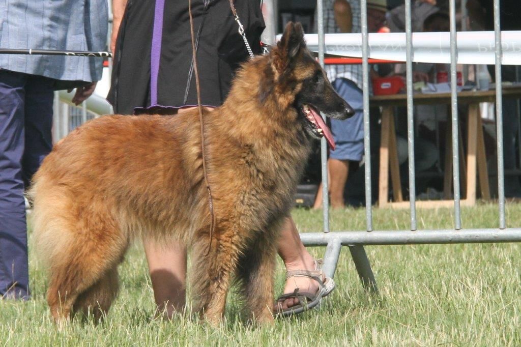 DCC, belle taille fauve chaud exc fourrure tête bien masquée, un peu fluide mais bon parallelisme.Oreilles moyennes, exc yeux sombres, belle encolure corps court et rablé, croupe un peu fuyante, angulations correctes, ossature moyenne, bonnes allures.