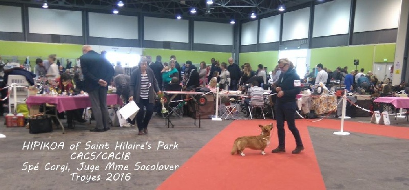 Le 8/01/2016, Hipikoa obtient pour sa 2e sortie en exposition, la RCACS à la Spéciale du Corgi Club de France lors du Paris Dog Show, après avoir été classée 2e ext en COF.