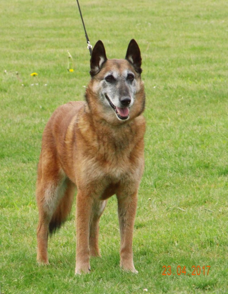 Très heureuse et très fière du titre de "Champion de France Vétéran", pour ma "Bilou", Belfast Rebel du Crépuscule des Loups, une chienne magnifique, aux aptitudes exceptionnelles, Sage et tellement affectueuse, et qui dans sa 12e année travaille toujours (à sa mesure) à la Bergerie des Bons Soins. Son titre a été homologué ce 28 juin 2017 et fait suite à son résultat de "Meilleur Vétéran toutes variétés" à la NE du CFCBB 2016.